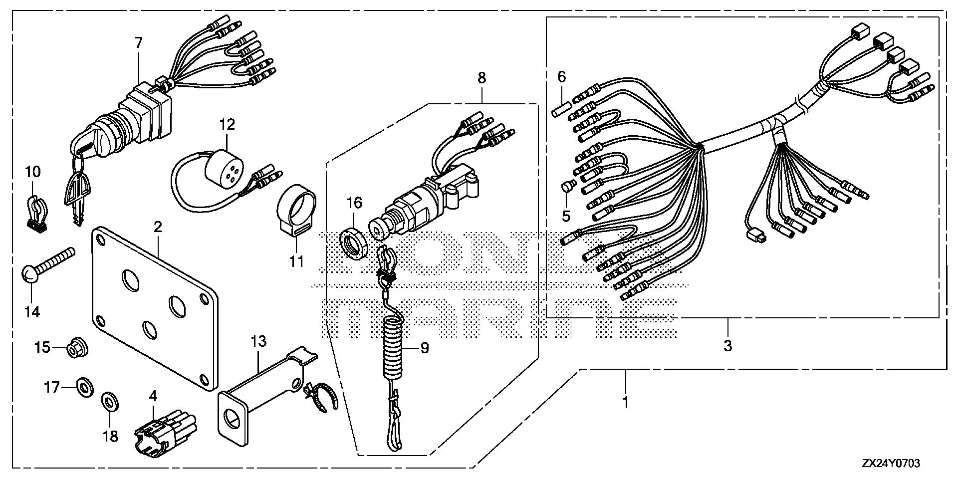 Mid - Large Outboard Engines (25 - 250hp) BF BF250 BF250A XXW BBJJ-1000001-9999999 CONTROL PANEL (4) - Skyline Marina